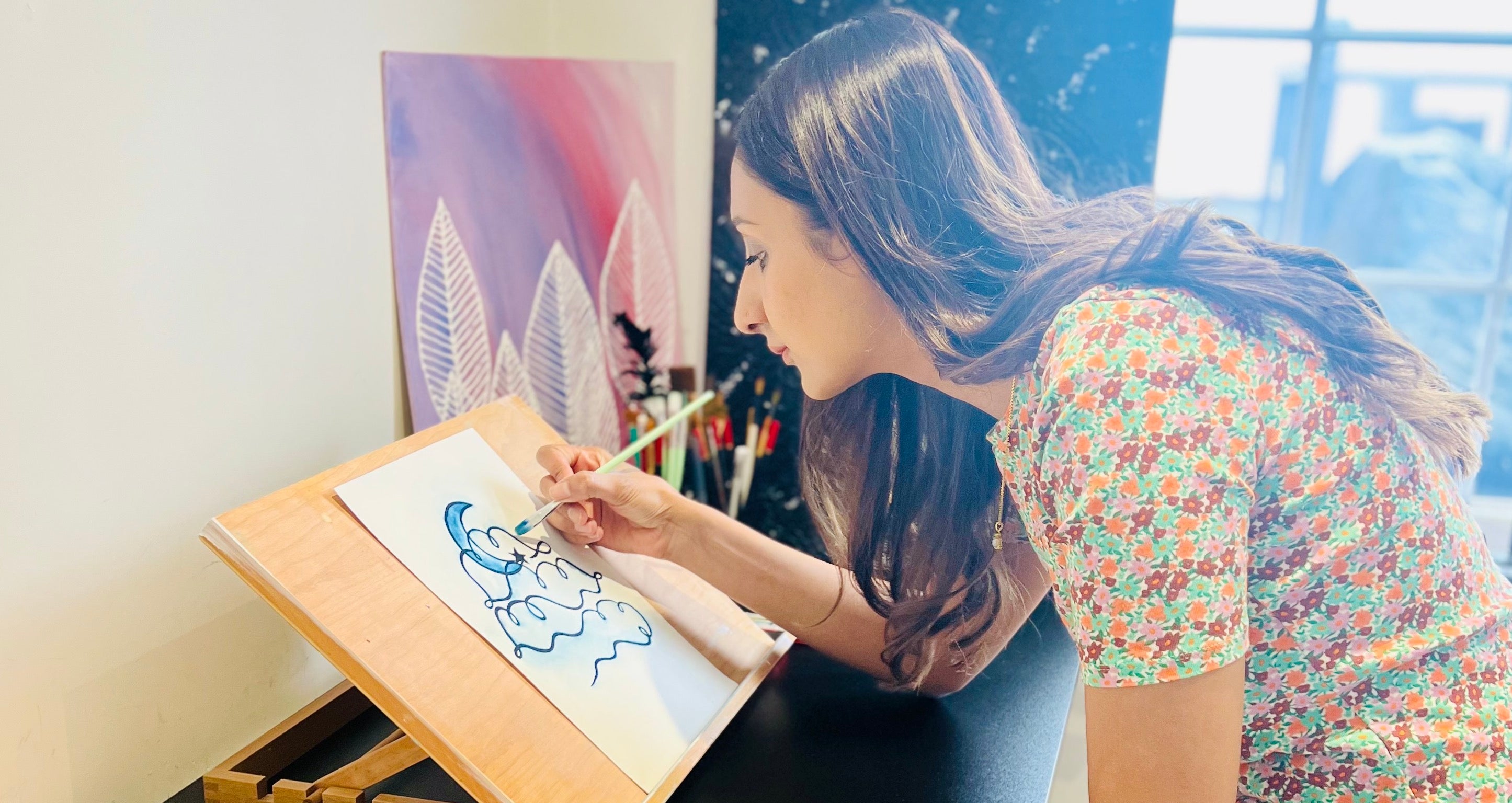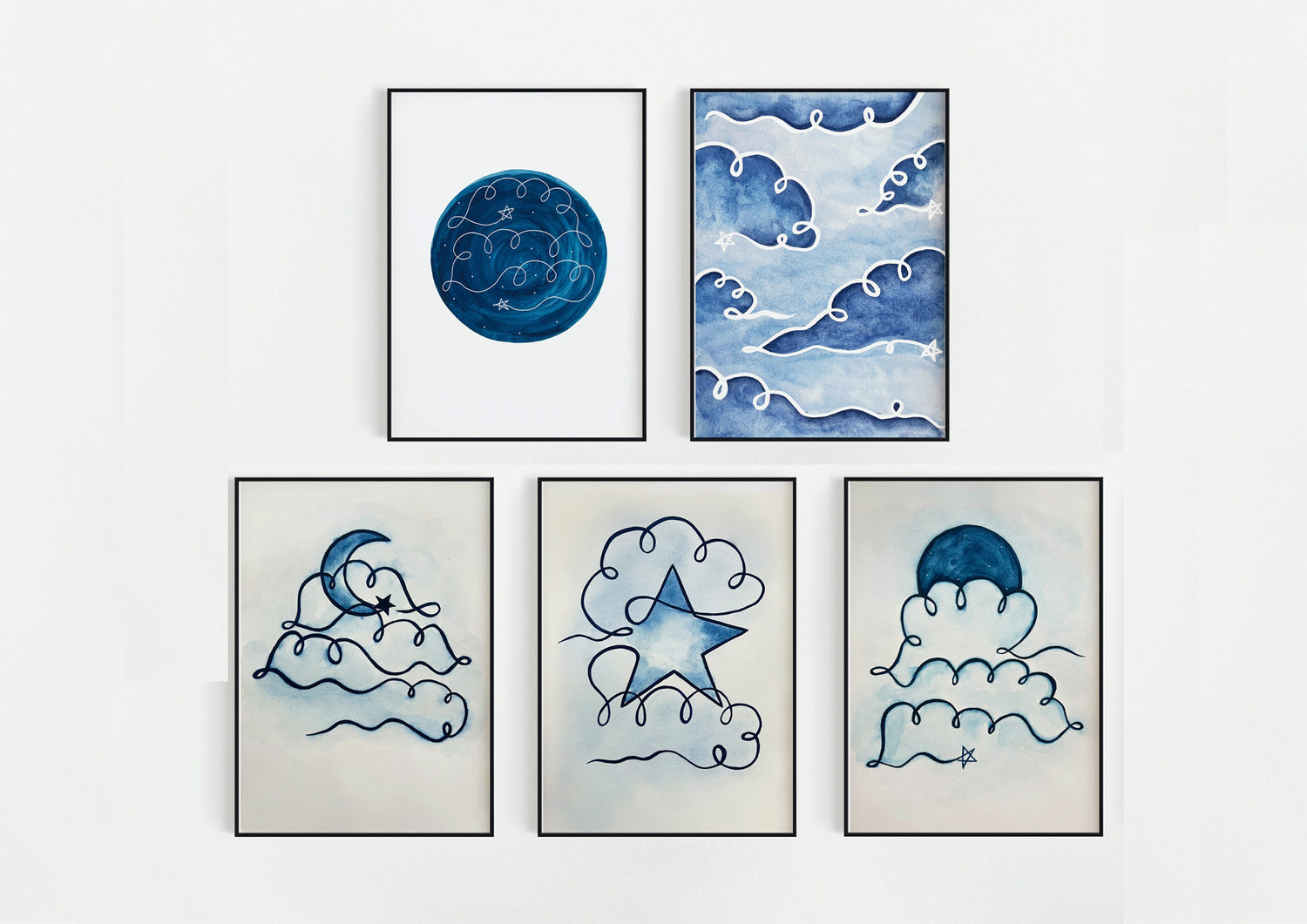 The collection is inspired by the night sky, featuring the moon, stars, and clouds. Each piece is titled with a feeling or emotion and has its own unique affirmation. Let these art pieces be your reminder of peace and positivity within your home. When you see them on your walls, let them inspire you to show gratitude and affirm your personal power to set mindful intentions